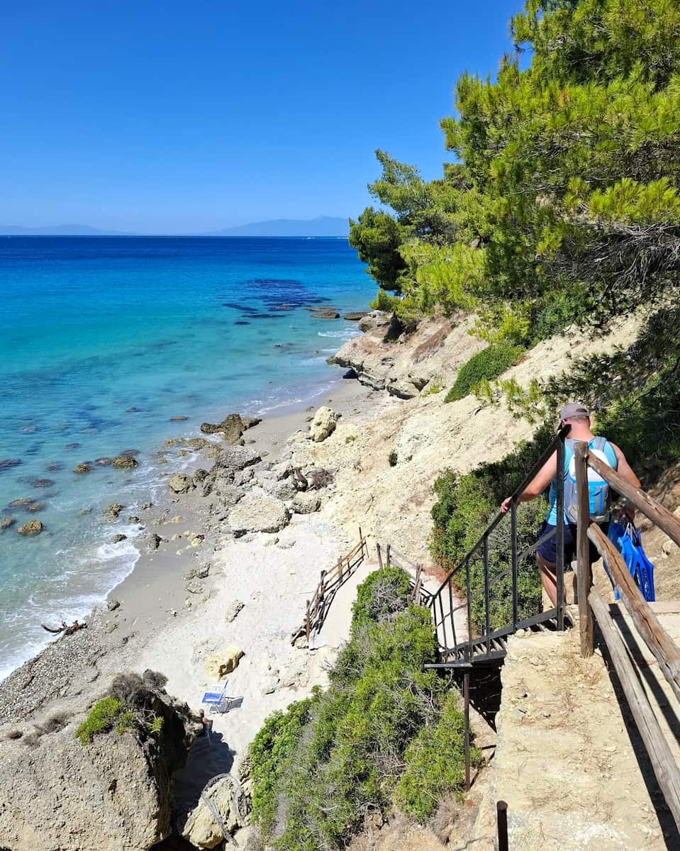 Possidi è famosa per il suo promontorio spettacolare, la spiaggia sabbiosa infinita e i tramonti mozzafiato che la rendono una delle spiagge più panoramiche di Kassandra. Il suono delle onde e il profumo dei pini si fondono mentre si cammina sulle dune sotto un cielo immenso che al tramonto sembra incontaminato. Una sera ho scalato il faro di Capo Possidi, guardando il sole che si scioglieva all’orizzonte mentre i pescatori tiravano le reti sottostanti, una parte senza tempo del ritmo marittimo di Kassandra.