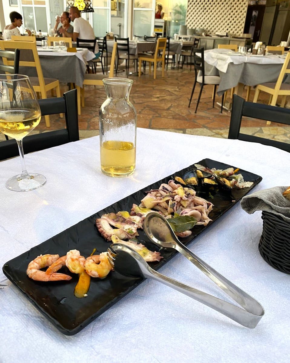 Ristoranti di lusso. Il ristorante Mare Nostrum serve i migliori frutti di mare della città: l’aragosta costa 4.500 lek, ma è cucinata alla perfezione. Villa Mediterrane offre una cucina raffinata con vista sul mare, con piatti principali che vanno dai 2.200 ai 3.800 lek. Entrambi richiedono la prenotazione dopo le 19:00 e si trovano a breve distanza in auto dalle zone più frequentate di Ksamil.
