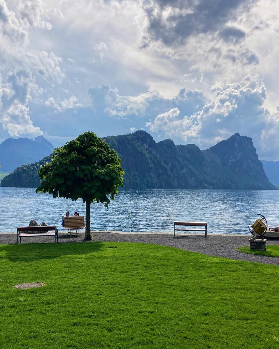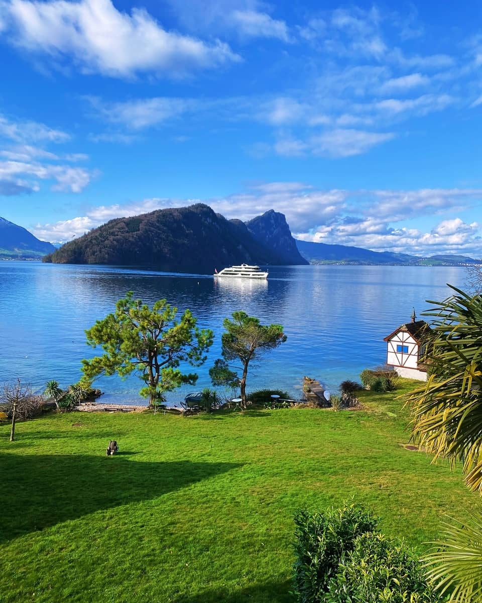 🌊 Il fascino del lago: questa parte di Lucerna offre una vista mozzafiato sulle montagne circostanti, rendendola il luogo perfetto per una vacanza rilassante.