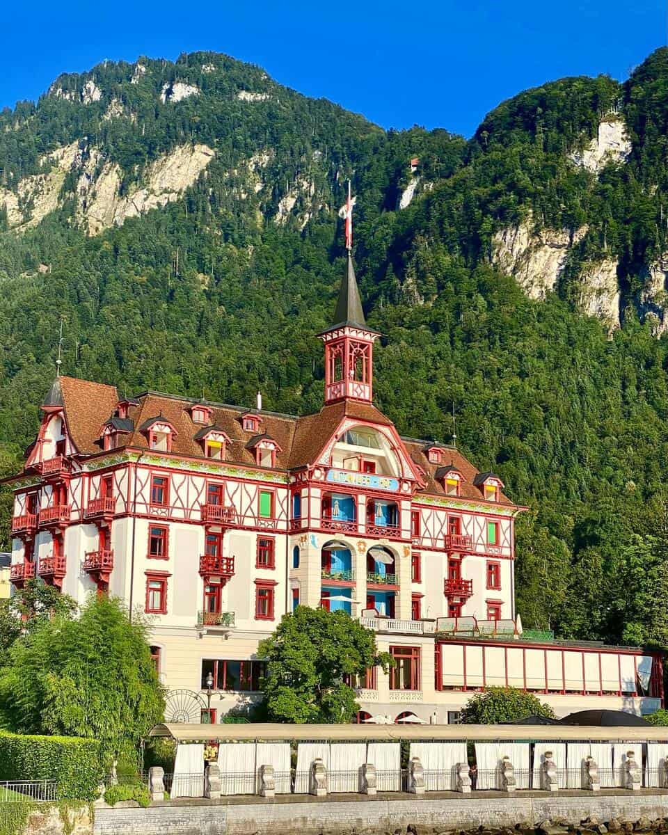 - Park Hotel Vitznau Questo lussuoso hotel, situato proprio sulle rive del Lago dei Quattro Cantoni, dispone di una spiaggia privata, due ristoranti gourmet, un’ampia area spa e suite dal design personalizzato, perfette per un soggiorno rilassante e di alto livello.