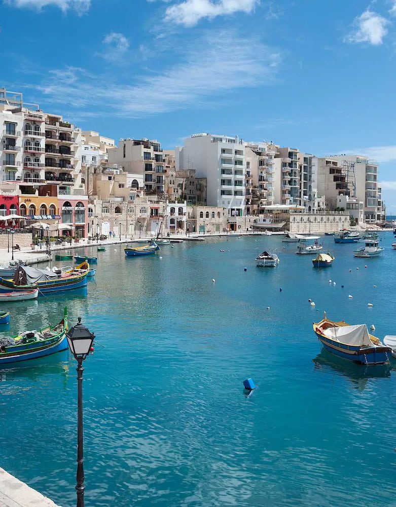 ☀️ Giornate di sole: Adagiata lungo la costa nord-orientale di Malta, la vivace città di St. Julian’s offre ai visitatori un mix perfetto di sole, attrazioni e divertimento. Con le sue giornate baciate dal sole e le sue notti elettriche, St. Julian’s è piena di energia.