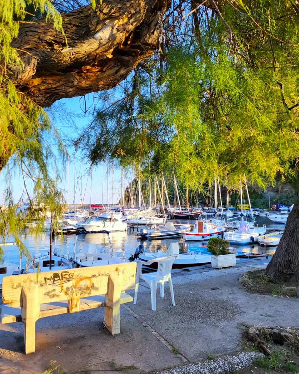 Il porto turistico è molto vivace. Il piccolo porto turistico ospita yacht di lusso accanto ai pescherecci locali. Ho preso un aperitivo al Sunset Bar (Via Chiaiolella 2), dove l’Aperol Spritz costa 7 € e servono olive e patatine gratis. È il posto perfetto per guardare le barche che vanno e vengono da questo lato dell’isola. L’atmosfera rilassata rende facile immaginare una vacanza perfetta a Procida proprio qui.
