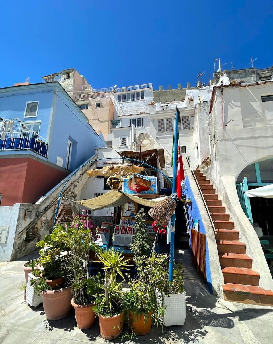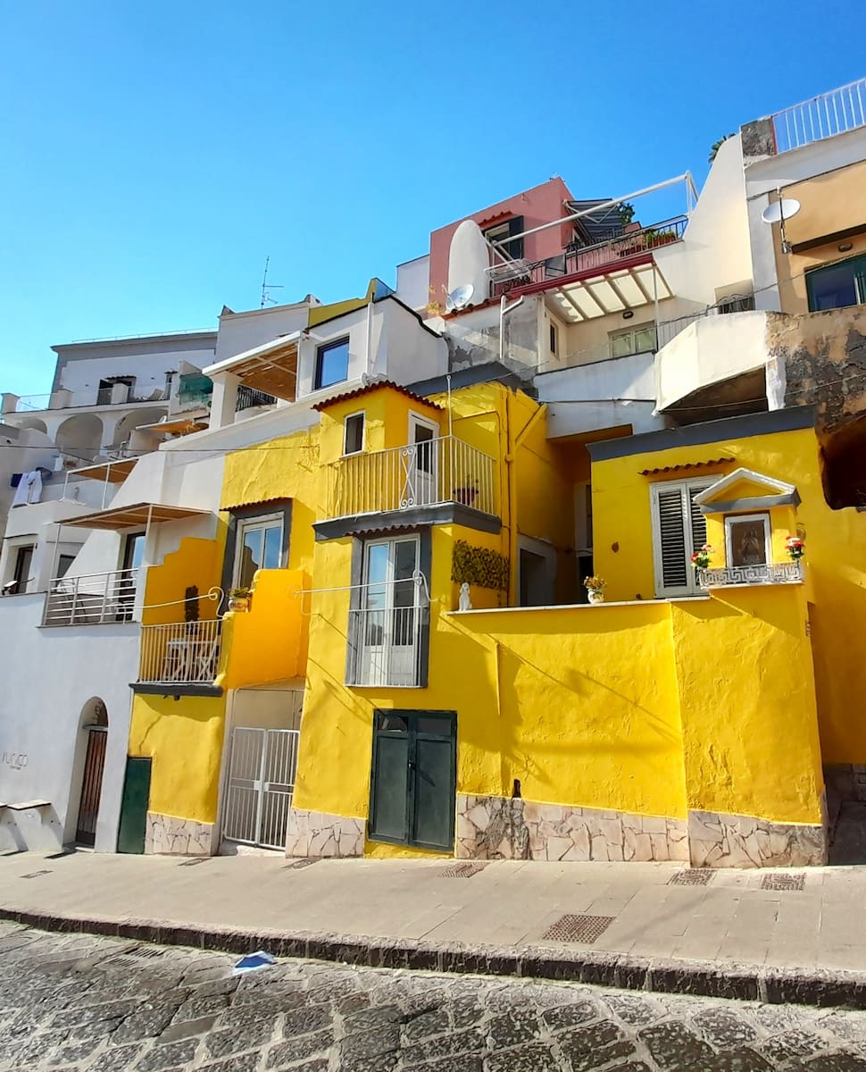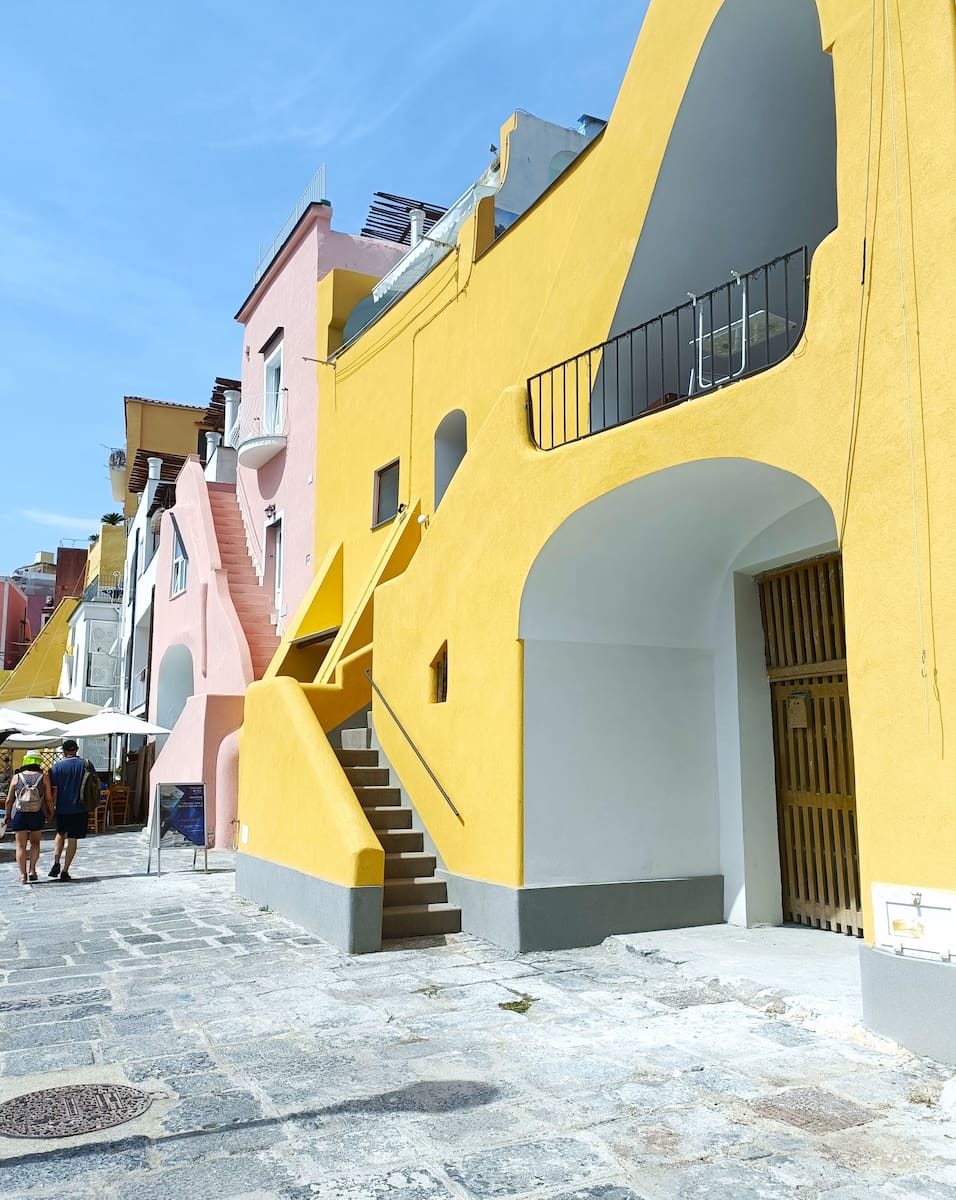 Arrivare qui richiede uno sforzo. Da Marina Grande ho percorso a piedi Via Roma e poi ho salito una ripida scalinata di circa 200 gradini! Il giorno dopo le mie gambe ne hanno risentito. Non ci sono autobus, quindi se avete bagagli con voi viaggiate leggeri. Tuttavia, una volta capito come arrivare a Procida, questa zona diventa una delle parti più gratificanti dell’isola e un luogo perfetto dove soggiornare a Procida per un’esperienza più lenta e autentica.