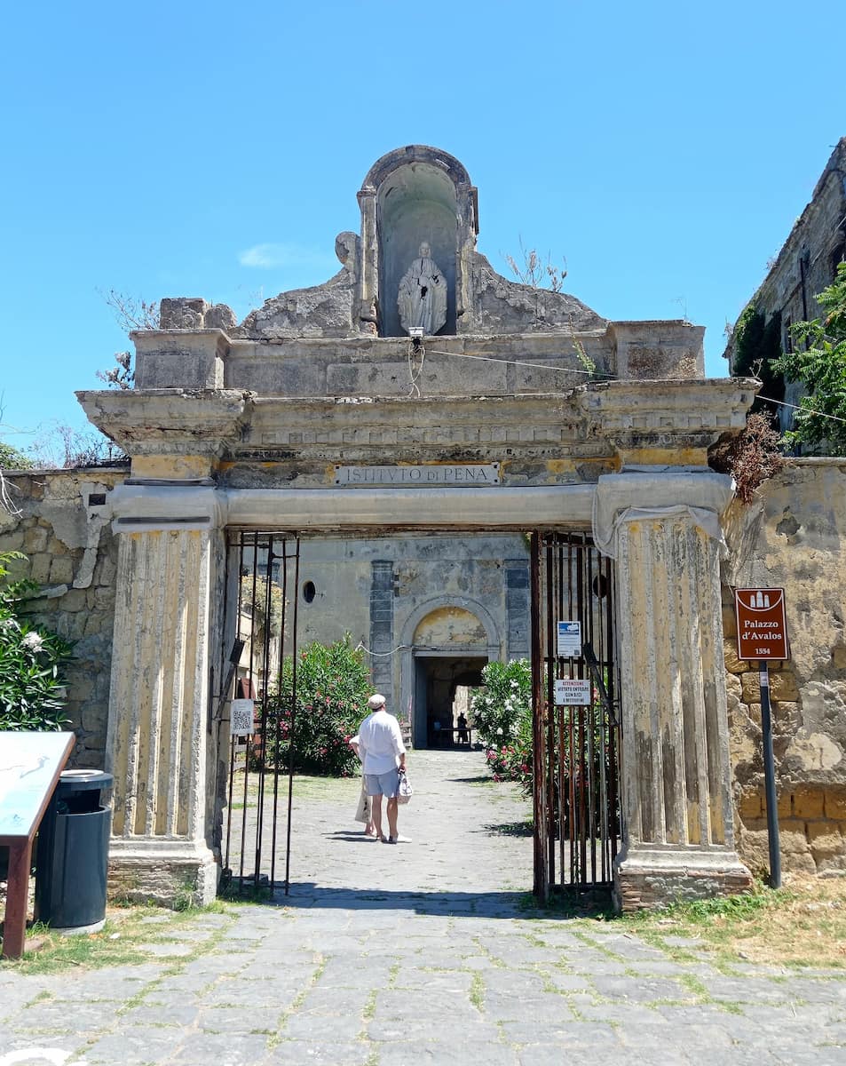 In alto tutto cambia. Terra Murata si trova in cima a Procida come una corona. Ho camminato lungo la strada tortuosa e improvvisamente tutta la baia di Napoli si è aperta sotto di me. Nelle giornate limpide, potevo vedere Capri, Ischia e persino il Vesuvio fumante in lontananza. Per chiunque legga una guida turistica di Procida, questa è una delle zone di Procida da non perdere, sia che si arrivi con i traghetti da Napoli e Ischia, sia che si soggiorni nelle vicinanze.