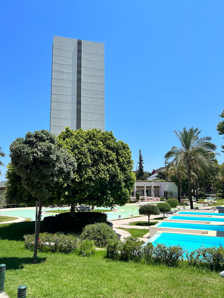 - Rodos Park – un moderno hotel in stile ecologico con ampi giardini, piscine e vista sulla baia.