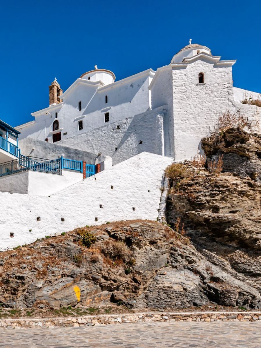 Patrimonio religioso. Ho contato sette piccole chiese sparse per le ripide strade di Glossa, ognuna con affreschi e icone unici. La chiesa principale, Panagia, ospita ogni 15 agosto una bellissima festa con danze tradizionali e musica dal vivo fino all’alba: senza dubbio uno dei momenti migliori per visitare l’isola e scoprire le sue autentiche tradizioni.