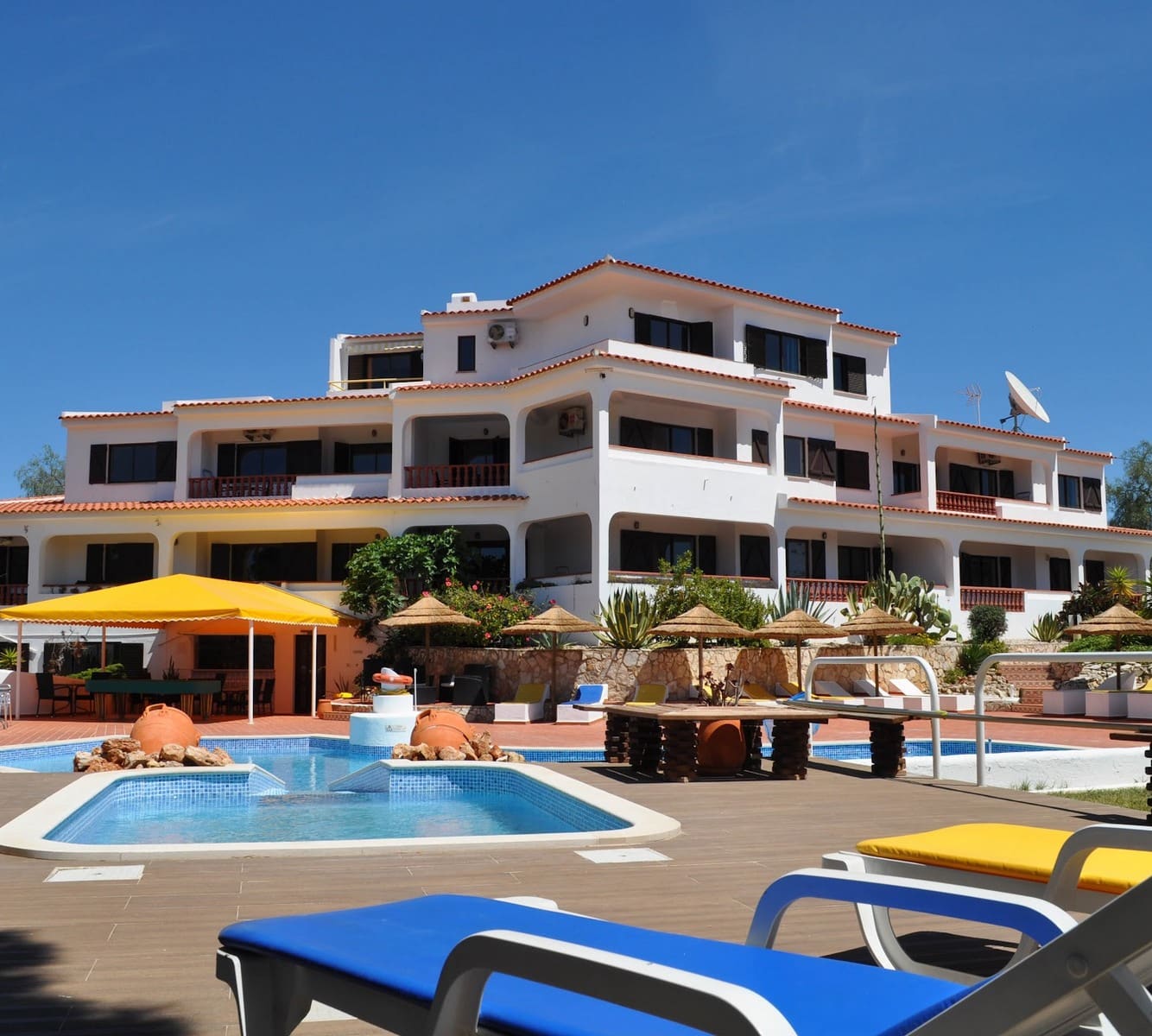 Villa Albufeira è un incantevole hotel economico situato a pochi passi dal vivace centro di Albufeira. Questo hotel offre un ottimo rapporto qualità-prezzo, con camere confortevoli, una rinfrescante piscina all’aperto e un’incantevole area giardino dove rilassarsi. Il personale cordiale è sempre pronto ad aiutarvi a pianificare il vostro soggiorno ad Albufeira, consigliandovi i migliori ristoranti, caffè e attrazioni della zona. Anche se l’hotel non si trova direttamente sulla spiaggia, è a breve distanza e potrete raggiungere facilmente le spiagge sabbiose e le acque cristalline della splendida costa di Albufeira. Villa Albufeira è la scelta ideale per i viaggiatori che desiderano esplorare la città e i suoi dintorni senza spendere troppo, ed è uno dei migliori hotel di Albufeira per i visitatori attenti al budget. Sia che stiate pianificando una fuga romantica o una vacanza in famiglia, questo hotel offre la perfetta combinazione di convenienza, comfort e comodità, assicurandovi un soggiorno memorabile in questa splendida località turistica portoghese.
