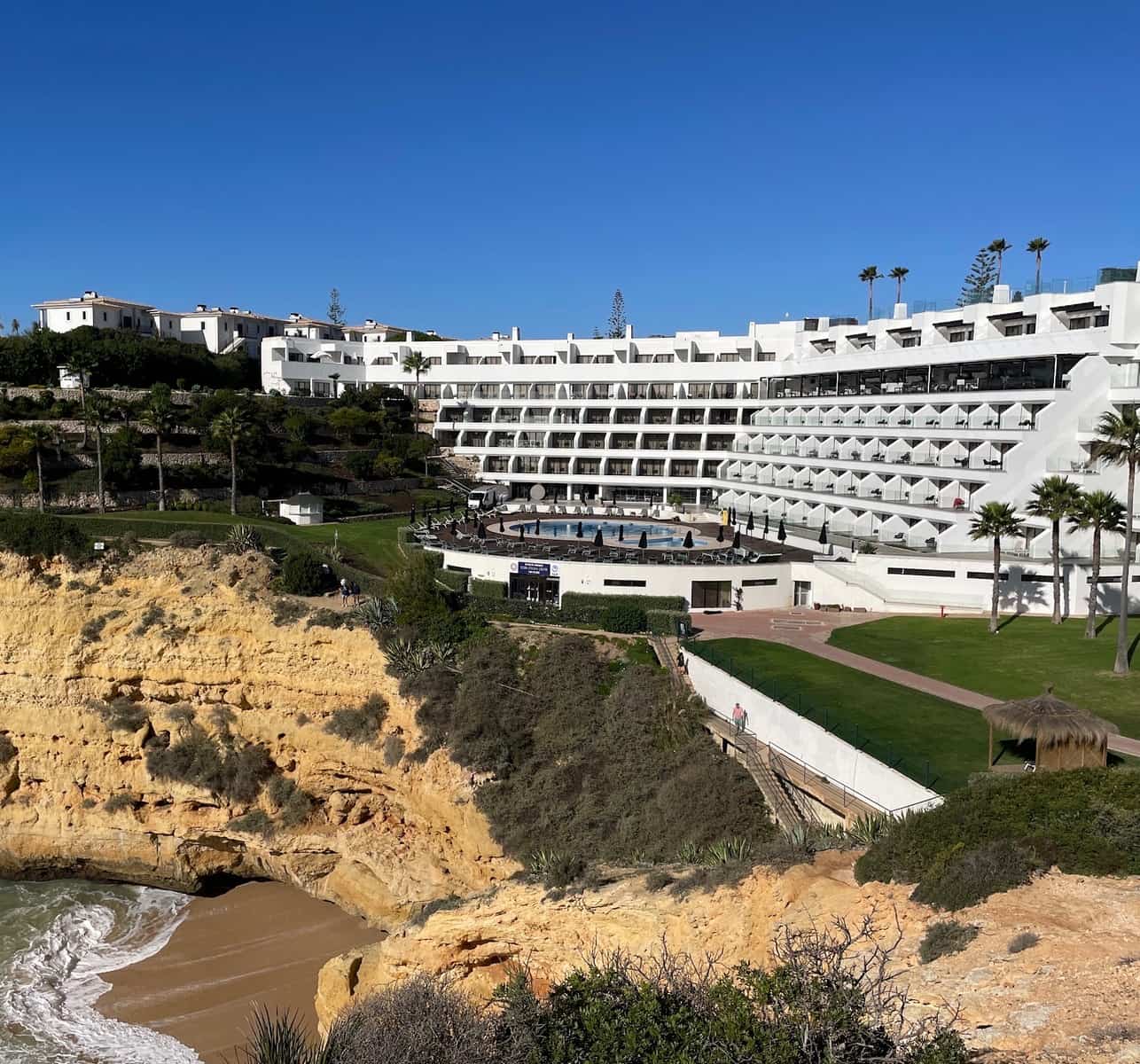 Il PortoBay Falésia è un’altra fantastica opzione per chi cerca un hotel sulla spiaggia ad Albufeira. Situato a pochi passi dalla splendida Praia da Falésia, questo hotel a 4 stelle offre accesso diretto a una delle spiagge più belle del Portogallo. L’hotel presenta un design moderno con arredi eleganti e sistemazioni confortevoli, tra cui camere e suite con balcone affacciato sull’oceano o sui rigogliosi giardini. Gli ospiti possono usufruire di una serie di servizi, come una piscina all’aperto, un centro benessere con massaggi, un centro fitness e un ristorante che serve deliziosi piatti della cucina portoghese e internazionale. La posizione privilegiata dell’hotel consente agli ospiti di esplorare facilmente l’incantevole città di Albufeira, con la sua vivace vita notturna, i suoi negozi e i suoi ristoranti, offrendo al contempo un rifugio tranquillo per coloro che desiderano rilassarsi sulla spiaggia. Il PortoBay Falésia è una scelta eccellente per le coppie, le famiglie e tutti coloro che sono alla ricerca di una memorabile vacanza al mare in Algarve.