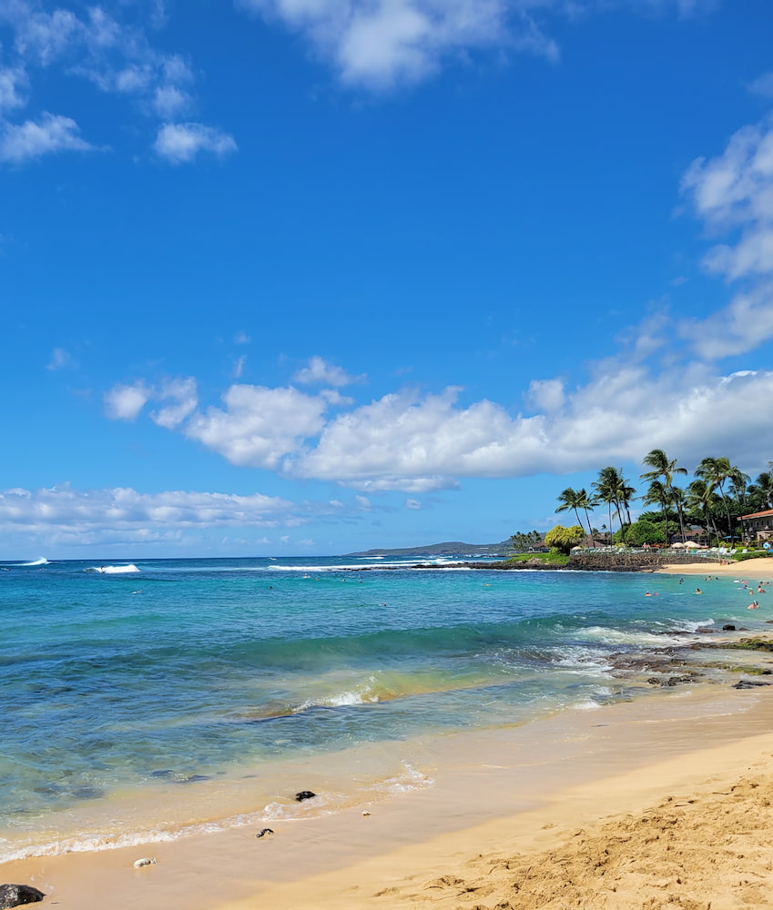 🏖️ Spiagge assolate: All’estremità meridionale dell’isola si trova la soleggiata cittadina di Poipu. Noleggiate l’attrezzatura da snorkeling in un negozio locale e recatevi al Poipu Beach Park. Questo luogo popolare ospita una varietà di pesci colorati e persino l’occasionale foca monaca.