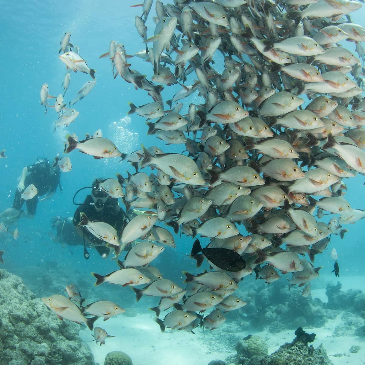 Opportunità di immersioni di livello mondiale. Rangiroa è fondamentalmente un gigantesco anello di corallo in mezzo all’oceano: le immersioni qui mi lasciano ogni volta a bocca aperta. Il Passo di Tiputa attira squali grigi, delfini e enormi banchi di barracuda. Six Passengers Diving conosce ogni angolo della laguna e ti porta in luoghi dove altri negozi di immersioni non vanno mai.